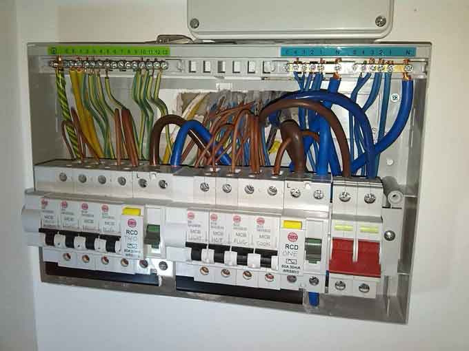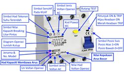 PEMUTUS LITAR BOCOR KE BUMI (RCD / ELCB / RCCB) - Berfungsi sebagai perlindungan kebocoran arus ke bumi dan pengasing litar. RCCB mestilah dipasang dalam setiap DB mengikut peraturan IEE dan Peraturan Peraturan Elektrik 1994 untuk memberi pelindungan dari kejutan elektrik.