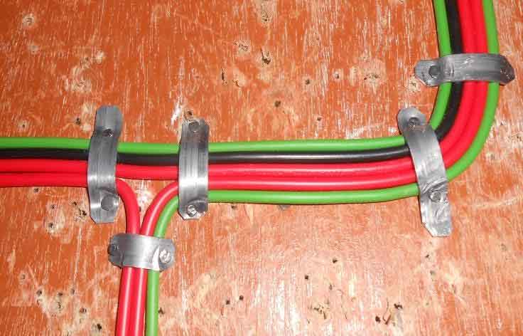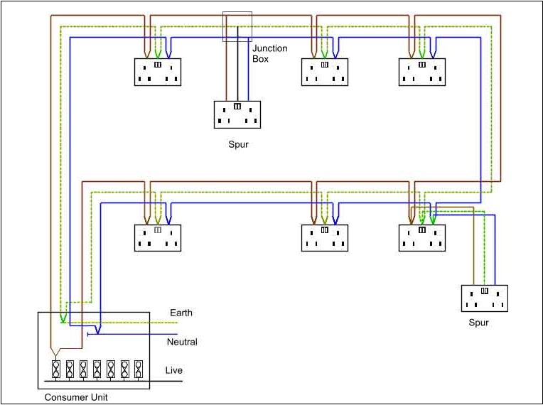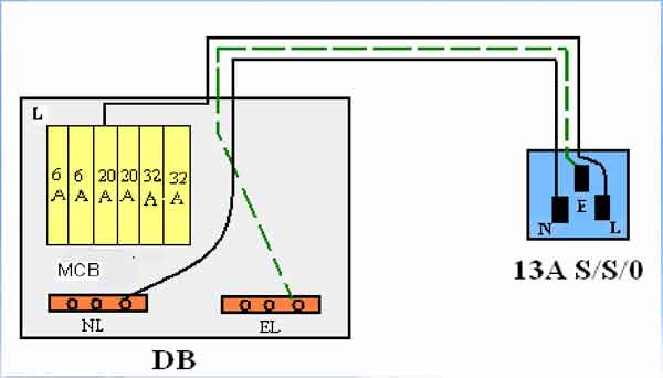 Litar Soket 13A - Saiz kabel minima yang boleh digunakan ialah 2.5mm2 pvc/pvc. Sekiranya bilik hendak dipasang dengan soket alur keluar kurang dari 30m2 maka bilangan maksimum yang boleh dipasang ialah sebanyak 6 unit soket alur keluar dan dikawal oleh fius yang berkadaran 20 amp. Jika keluasan bilik melebihi 30m2, maka bilangan soket alir keluar yang dibenarkan ialah 2 unit soket alir keluar sahaja. Sekiranya soket alir keluar hendak dipasang dalam bilik yang berasingan, maka bilangan soket alir keluar yang dibenarkan adalah sebanyak 6 unit soket yang dikawal oleh fius yang berkadaran 30amp, dan saiz kabel yang digunakan adalah 4mm2 pvc/pvc. Kabel litar gelang mestilah bermula dari satu fius di dalam kotak fius agihan dan disambungkan ke tiap-tiap punca soket alir keluar(SAK) dan akhirnya hendaklah kembali ke fius asalnya. Jumlah SAK di dalam litar gelang hendaklah tidak melebihi 10 unit SAK dengan keluasan bilik yang tidak melebihi 100 meter persegi. Saiz kabel yang digunakan ialah tidak kurang dari 2.5mm2 dan fius yang mengawal litar gelang tidak melebihi 30 amp.
